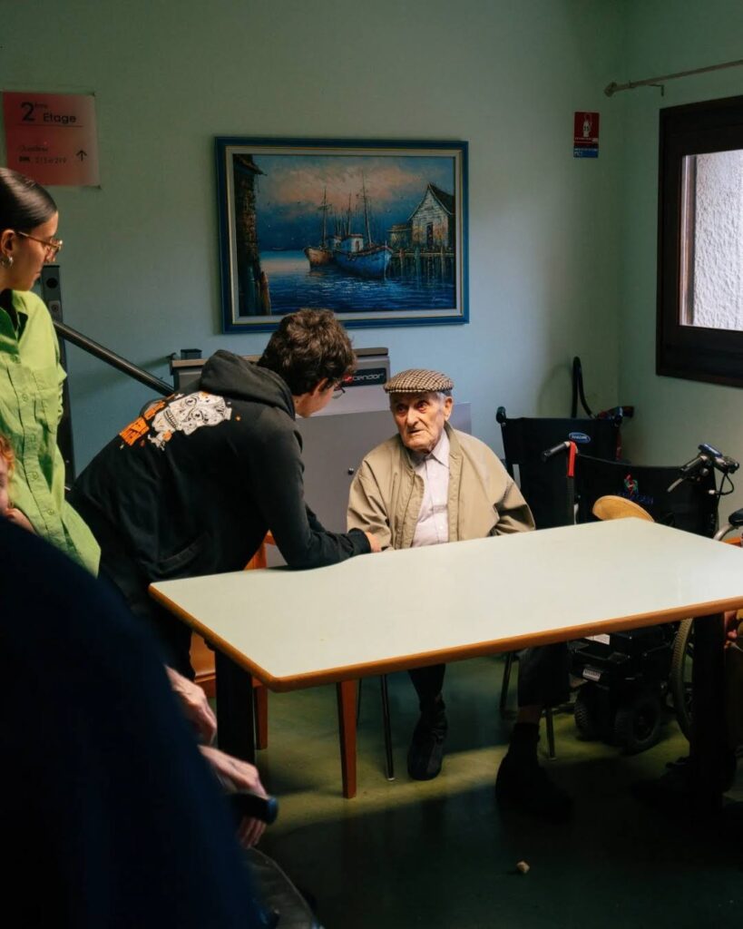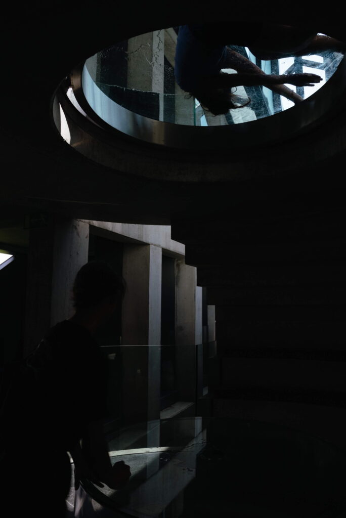 Durch das Weitwinkelobjektiv aufgenommen betrachtet man die Photographien, als wären sie in einer Art eigenen Welt, isoliert vom Rest. Diese Kuppel unterstreicht die Einzigartigkeit im Menschen und in der Menschheit, die sich in der Jugend entwickelt.